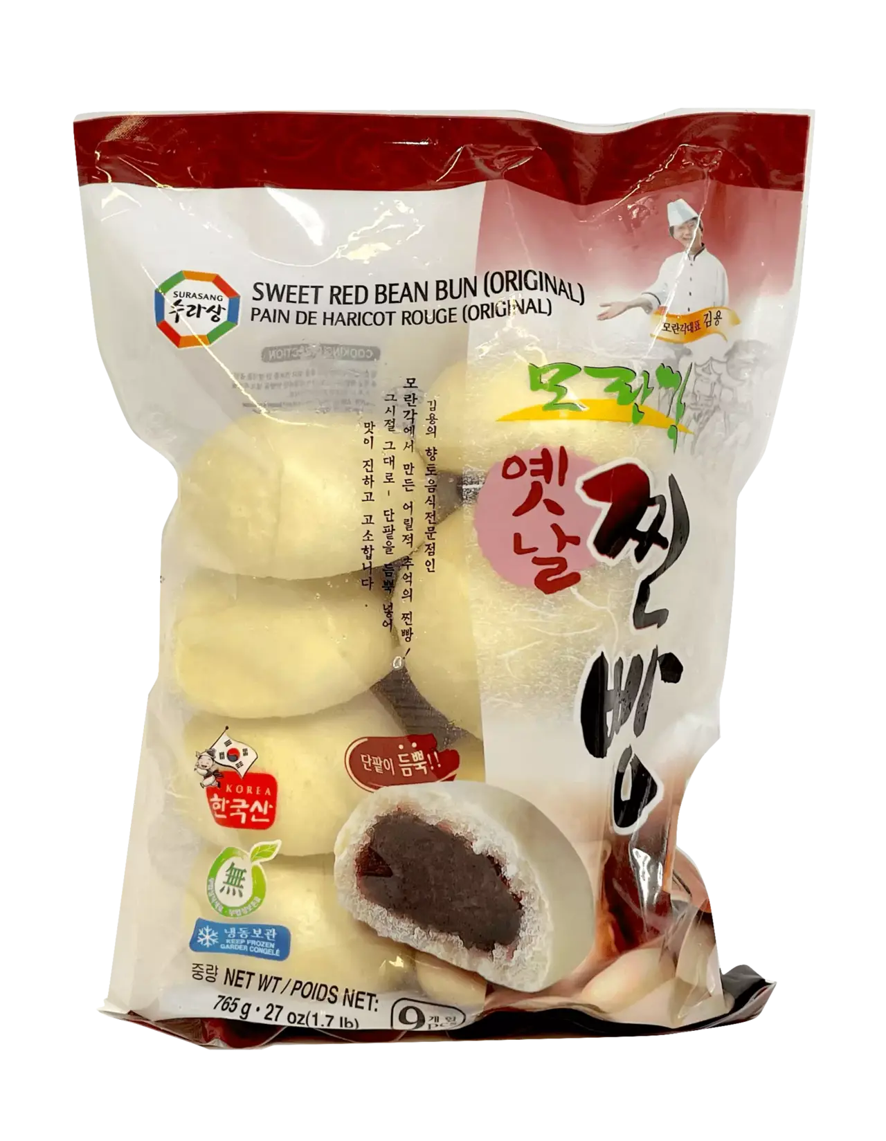 Ångande Majs Bao Fylld Med Rödbönspasta, Moranbong Chinp Fryst 765g Surang Korea