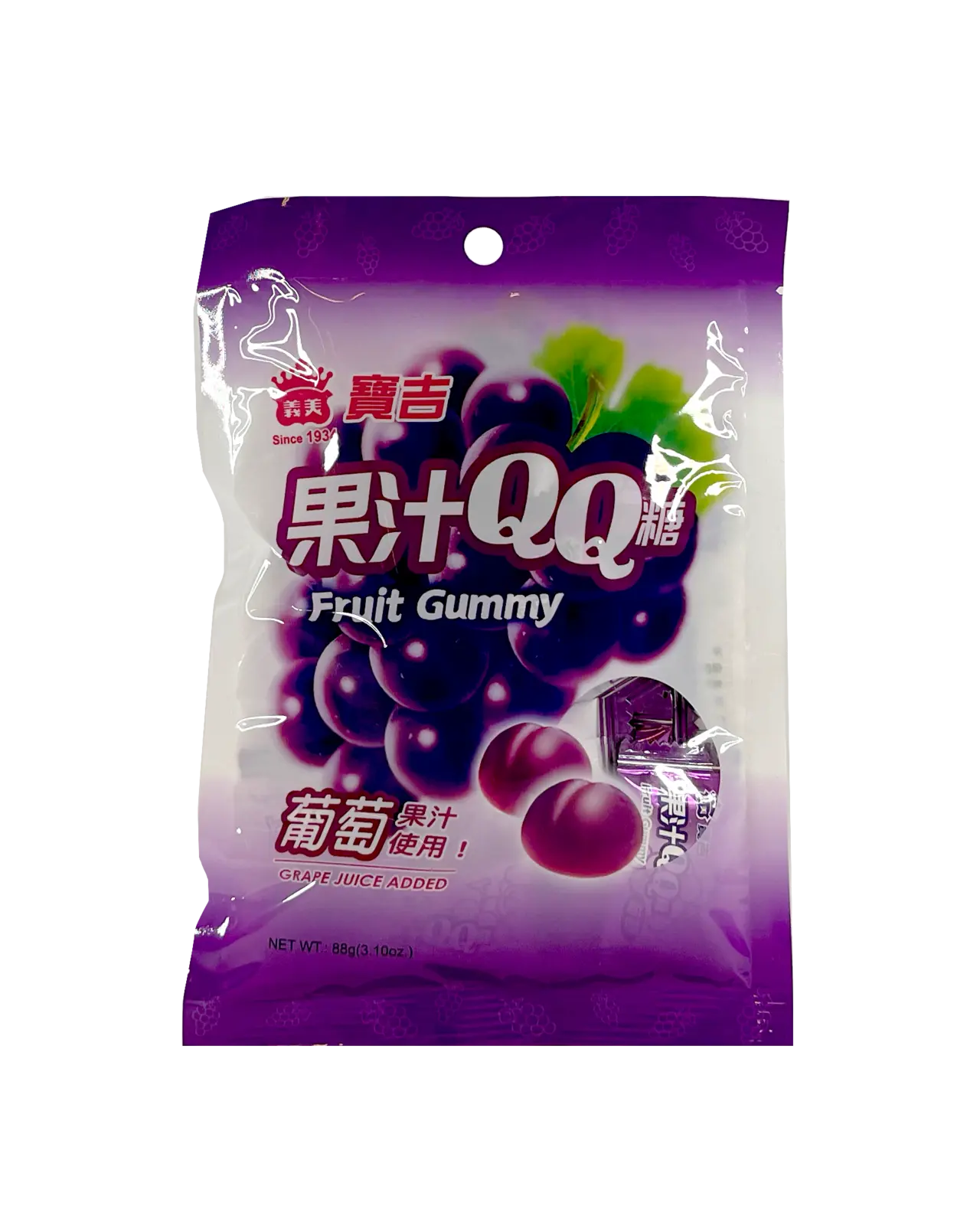 Ingredients: maltose syrup, sugar, concentrated grape juice 10%, gelatin, sweetener (E420), acidity regulator (E330), artificial grape flavor, coconut oil, glazing agent (E903)