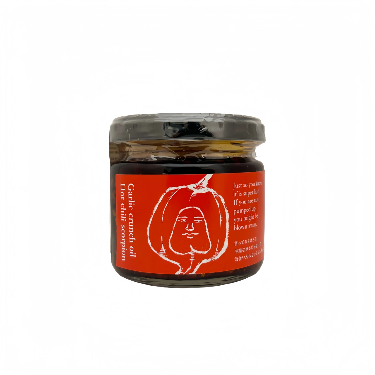 Ingredients: Vegetable oil (canola, sesame) 58%, fried garlic 18%, fried onion, flavor enhancer E621, sugar, paprika, salt, spicy bean paste (chili pepper, salt, rice wine, miso, SOY, broad bean powder), SESAME, SOY sauce powder (SOY, WHEAT FLOUR, salt), chili pepper 0.6%, color E160c, scorpion chili 0.1%, antioxidant E 306. May contain MILK, PEANUTS, CELERY.