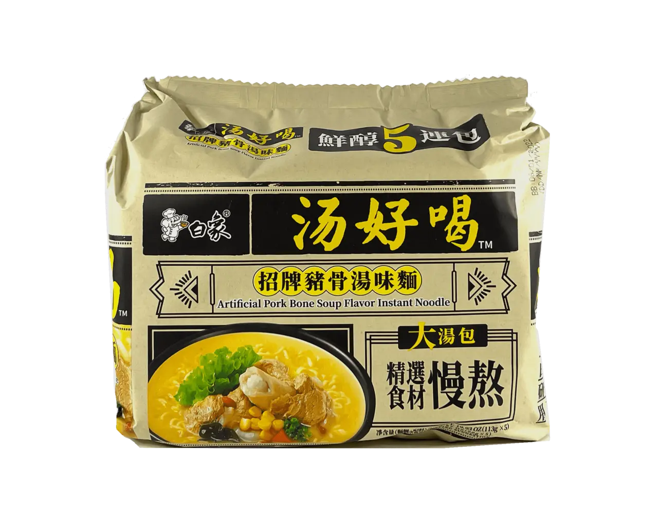Instant Noodles With Pork Soup Broth 113gx5pcs / Pack Bai Xiang China