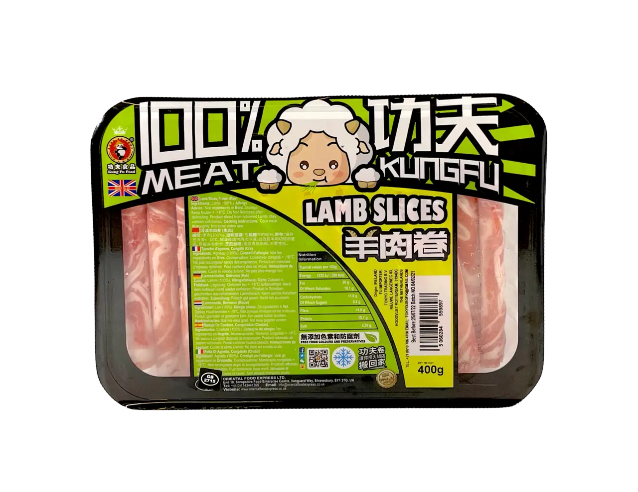 Lammskivor För Hotpot/Grill/Wok Frozen 400g Kung Fu UK