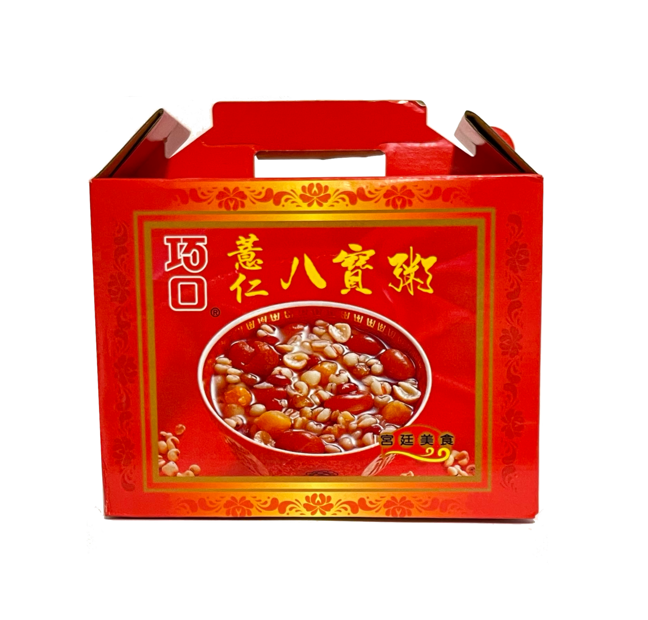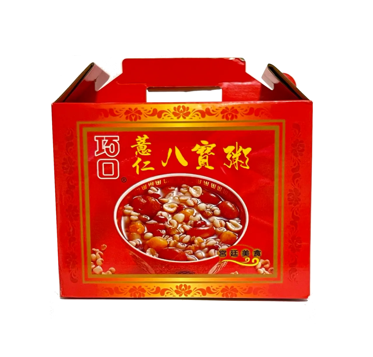 Ingredients: Water, sugar, glutinous rice, coix seeds, pinto beans, oatmeal, mung beans, red beans, oats, peanuts, longans, D-sorbitol, sulfurized distarch adipate (viscosity agent), flavors, pigment from monakus, palm sucrose ester, sodium erythorbate (antioxidant).