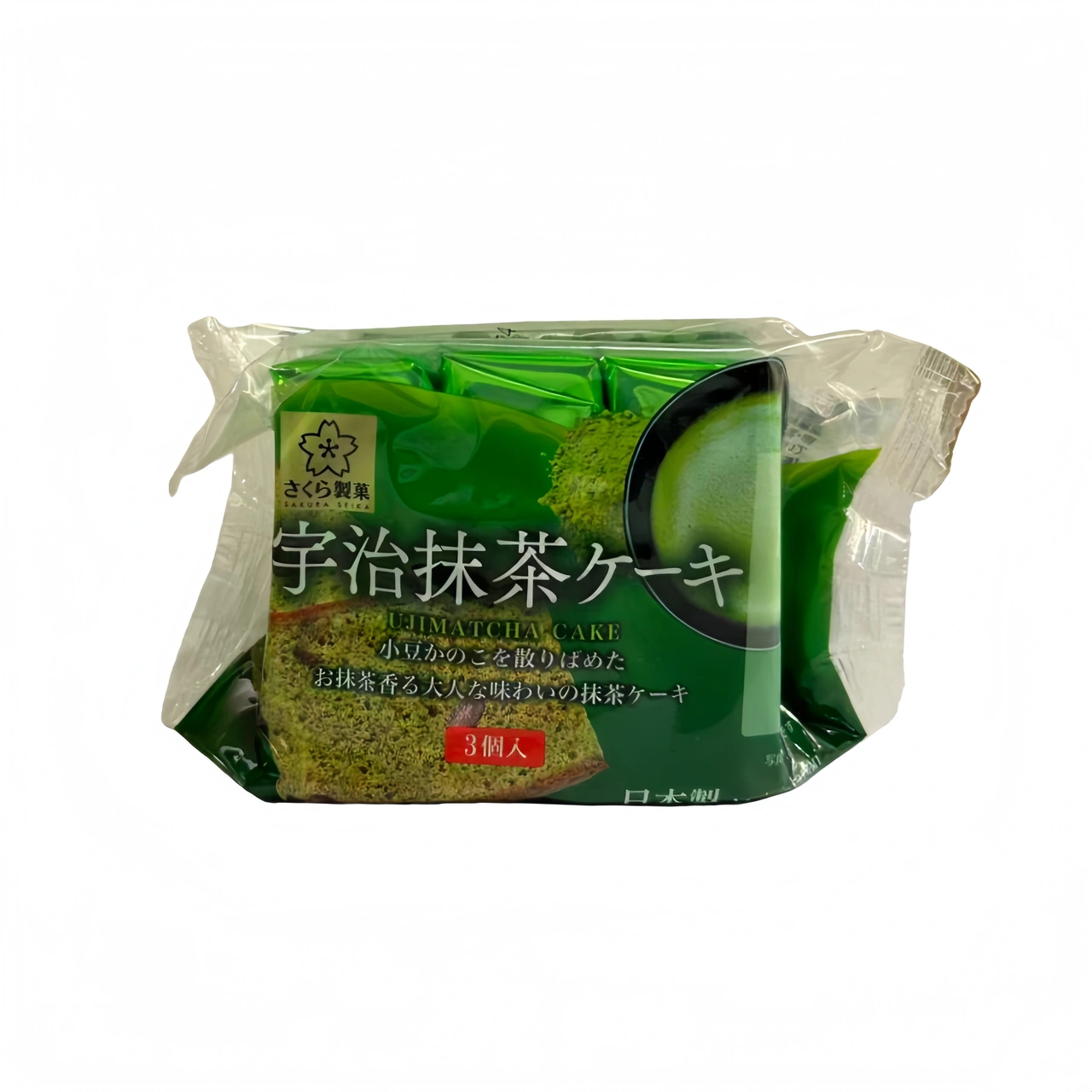 Ingredienser: socker, VETEMJÖL, flytande ÄGG, margarin(SOJA), stakesrap, honungssyrade röda bönor, SOJABÖNOLJA, sötningsmedel E 420, MJÖLKPRODUKT, ujimatcha 1,18%, emulgeringsmedel (E 322, SOJA), jäsmedel E 500, surhersreglerande medel: E 325, chlorellapulver, salt, förtjockningsmedel E 415, arom.