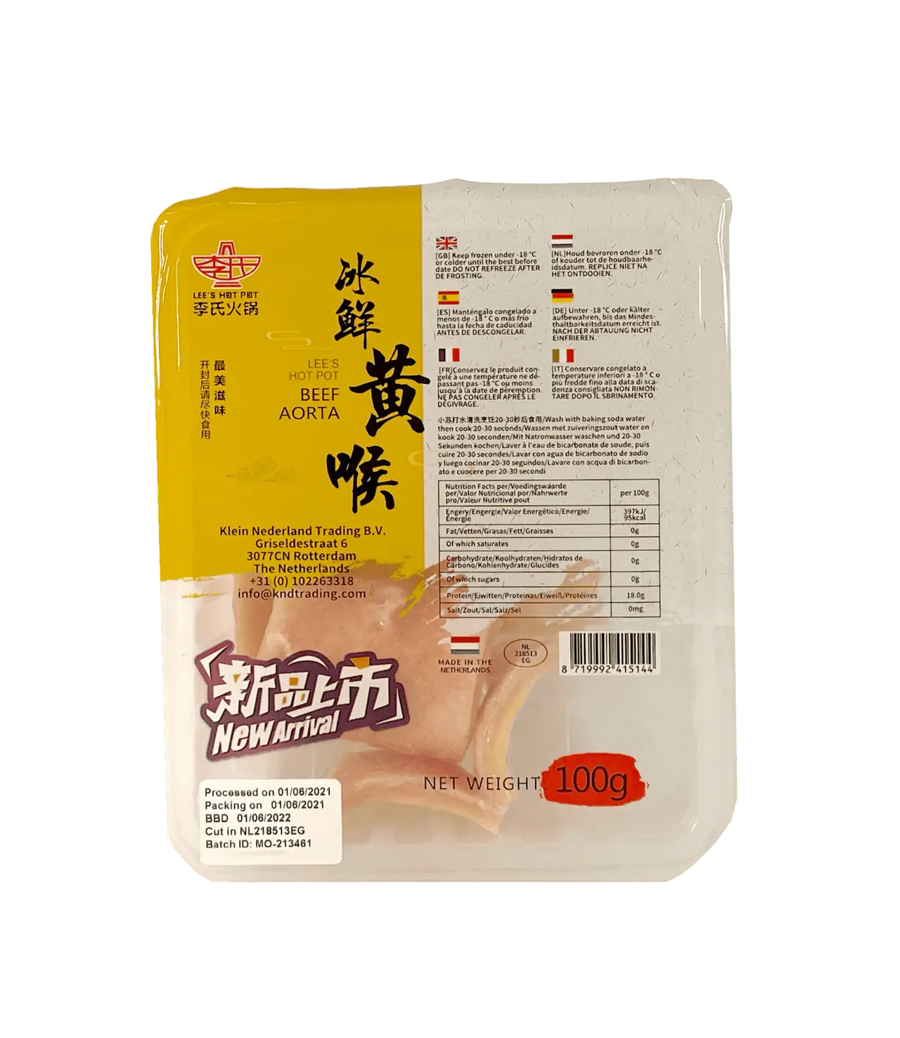 Komage/Aorta Fryst 100g Niu Xin Guan Lee's Hot Pot Nederländerna