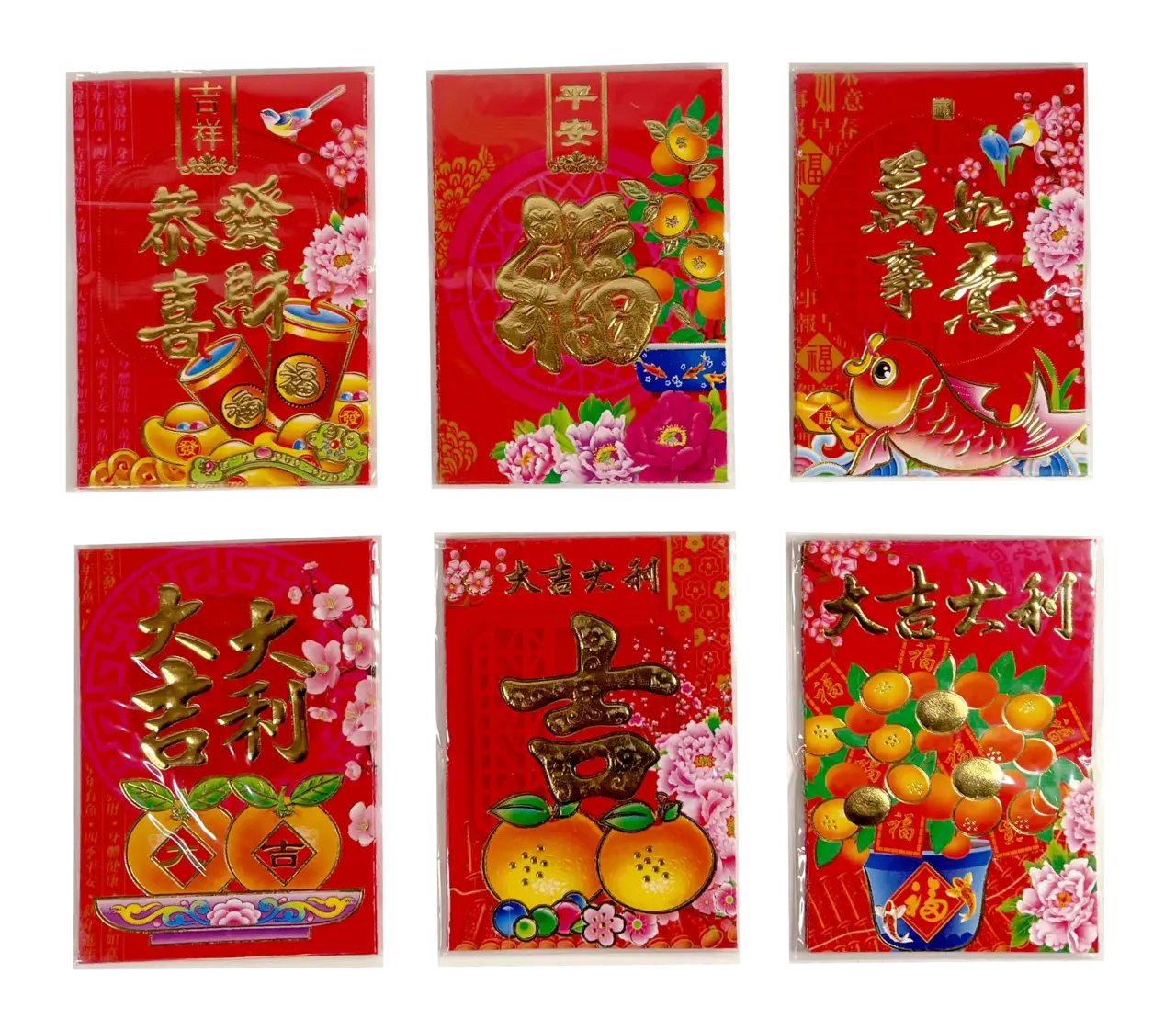 Rött Kuvert per påse(6st), kan ej välja motiv - Kina