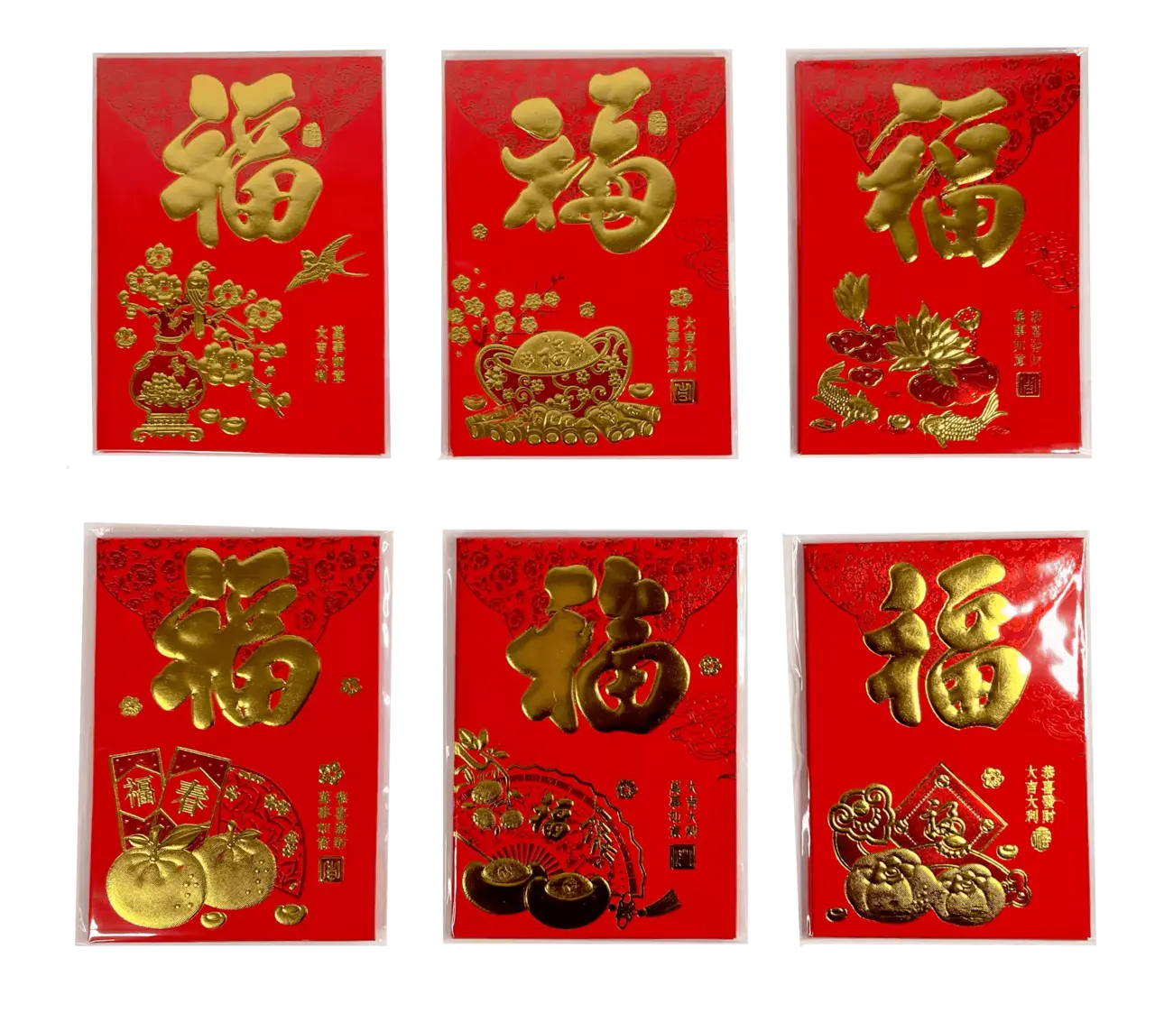 Rött Kuvert per påse(6st), kan ej välja motiv - Kina