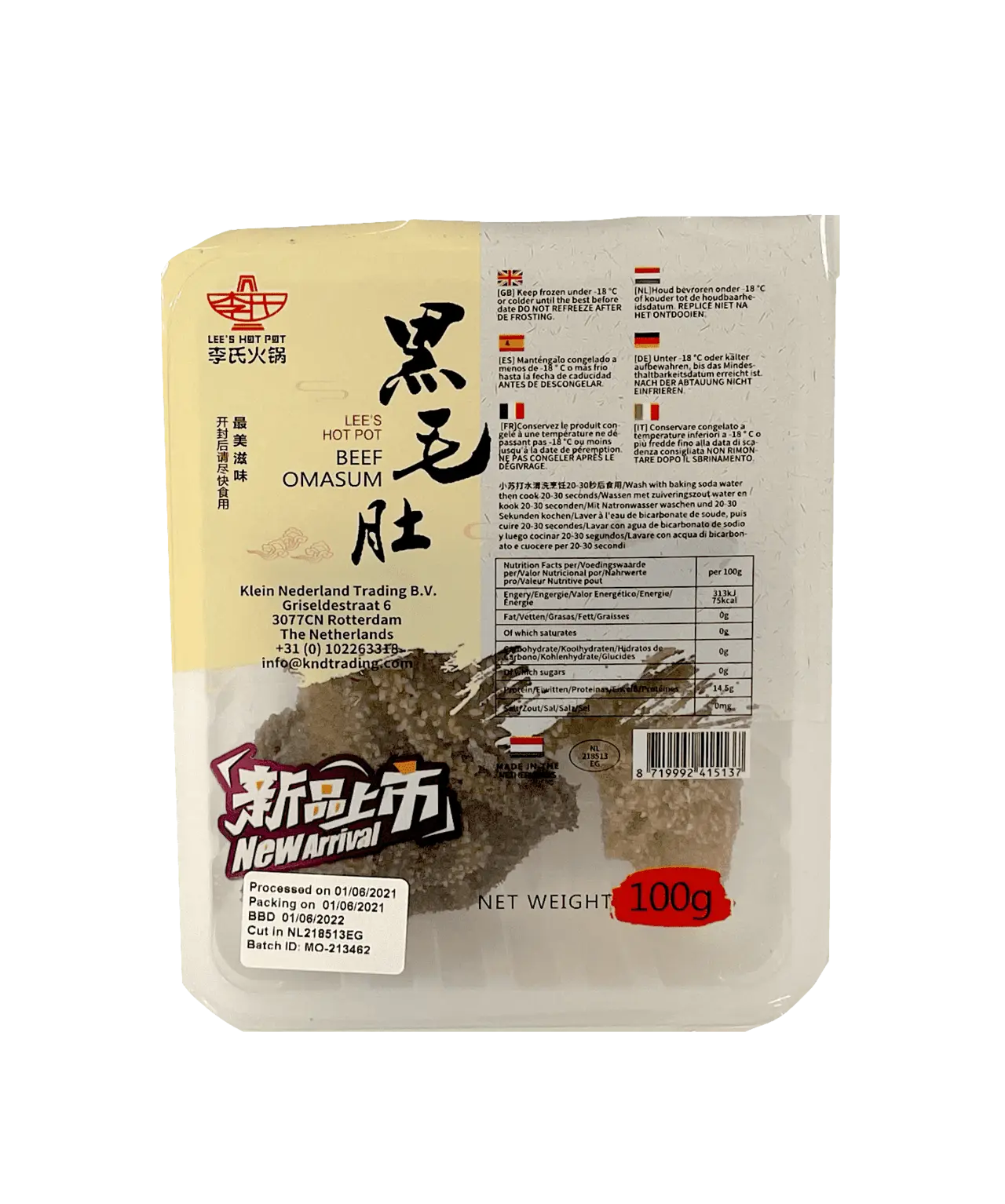黑毛肚 冷冻 100g Lee's Hot Pot 荷兰